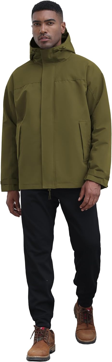 THE GYM PEOPLE Men's Waterproof Shell Jacket Outdoor Windbreaker Hiking Rain Coat with Hood(Olive Green)