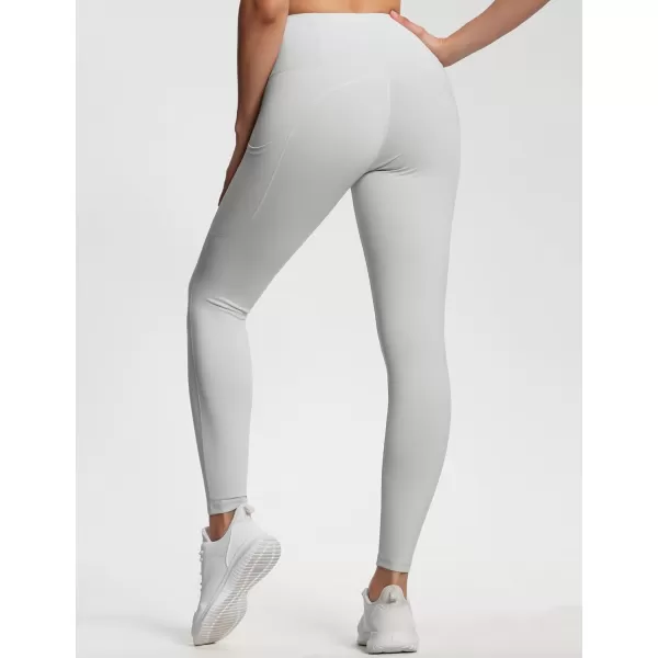 THE GYM PEOPLE Thick High Waist Yoga Pants with Pockets, Tummy Control Workout Running Yoga Leggings for Women(Bright Grey)