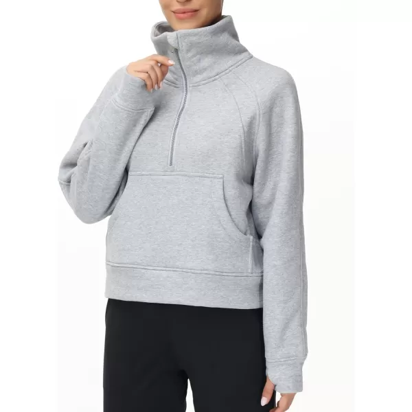 THE GYM PEOPLE Womens Half Zip Pullover Fleece Stand Collar Crop Sweatshirt with Pockets Thumb HoleGrey