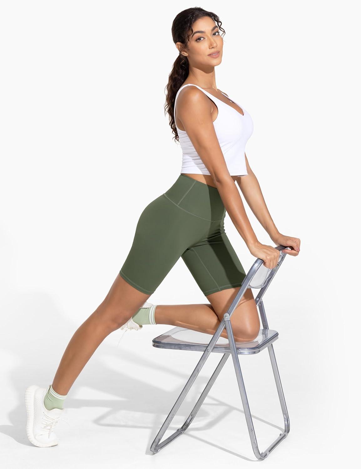 THE GYM PEOPLE Women’s High Waist Workout Yoga Shorts Tummy Control Stretchy Biker Running Athletic Shorts(Olive Green)