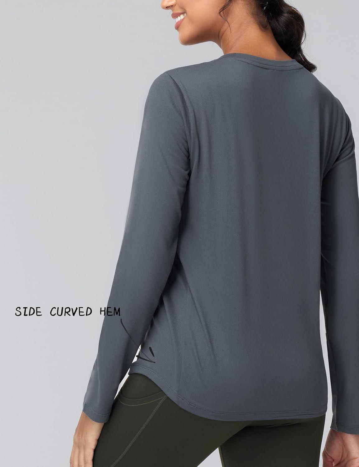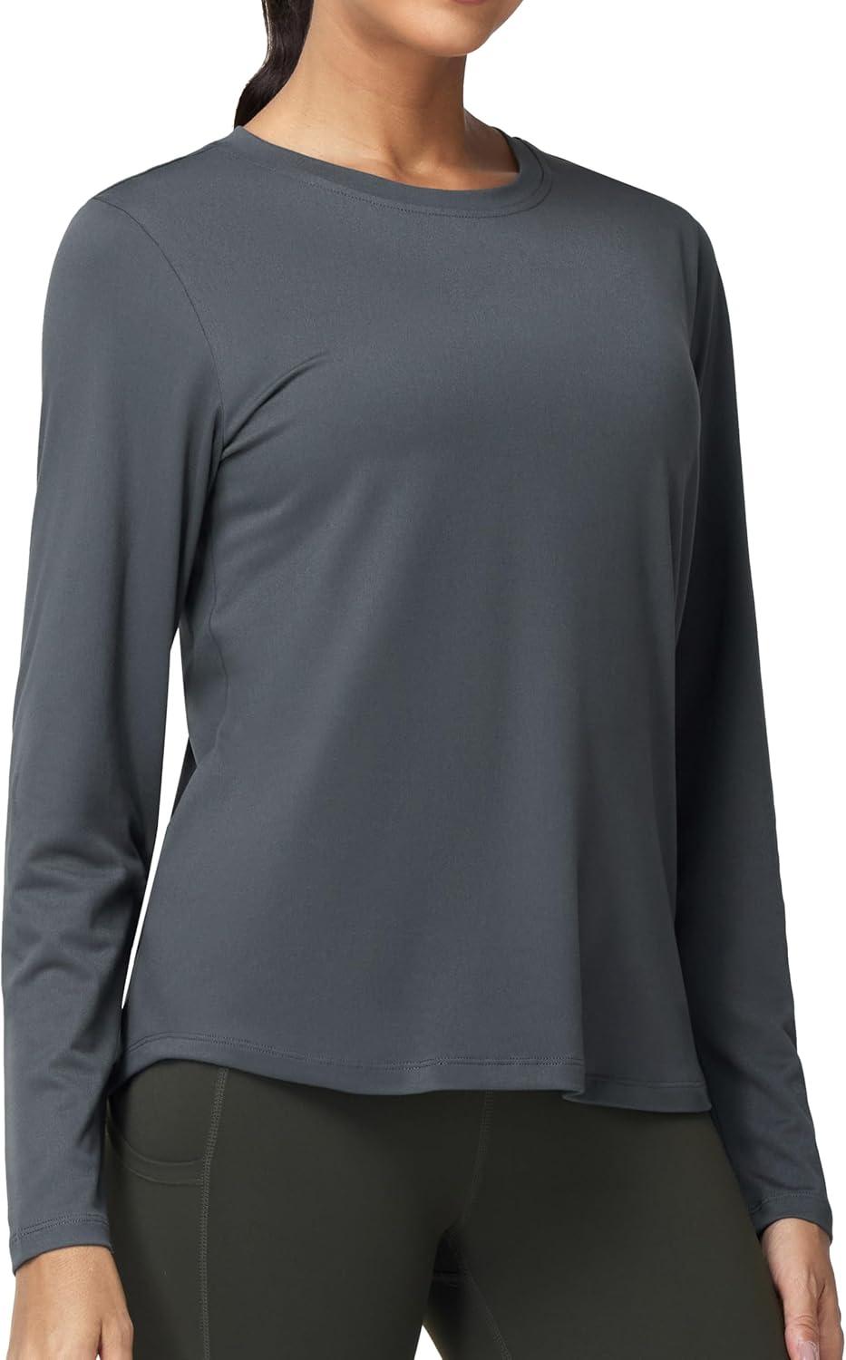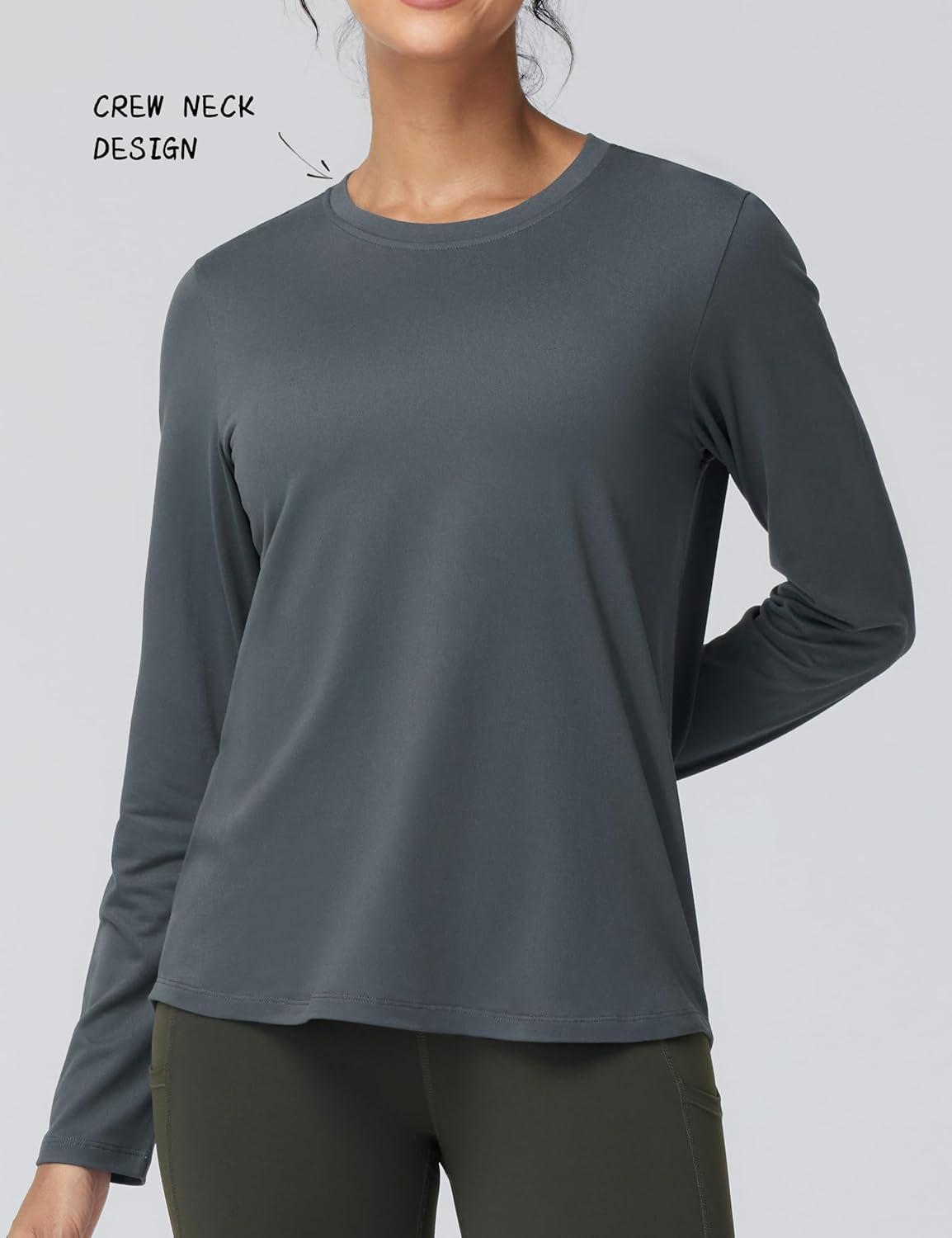 THE GYM PEOPLE Women's Long Sleeve Soft Workout Shirts Basic Crewneck UPF 50+ Sun Lightweight Fall Athletic Running Tops(Charcoal Grey)