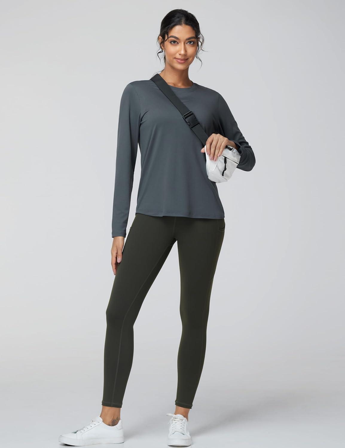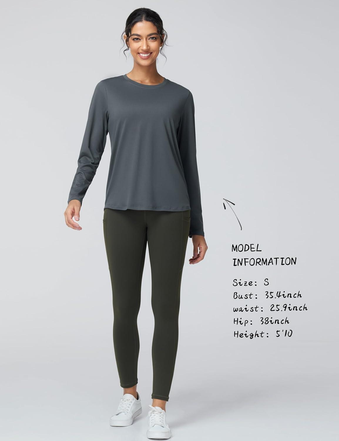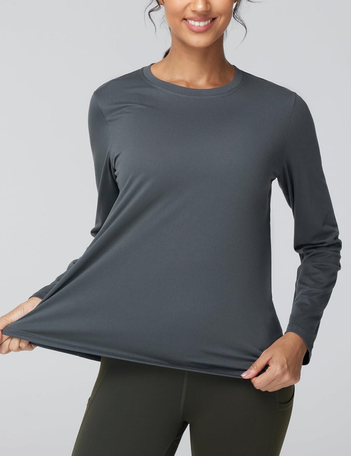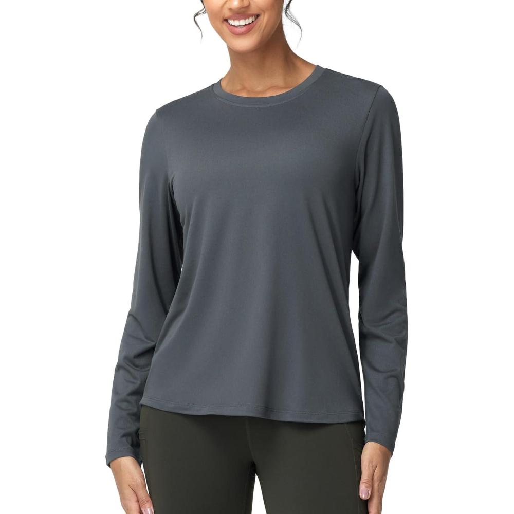 THE GYM PEOPLE Women's Long Sleeve Soft Workout Shirts Basic Crewneck UPF 50+ Sun Lightweight Fall Athletic Running Tops(Charcoal Grey)