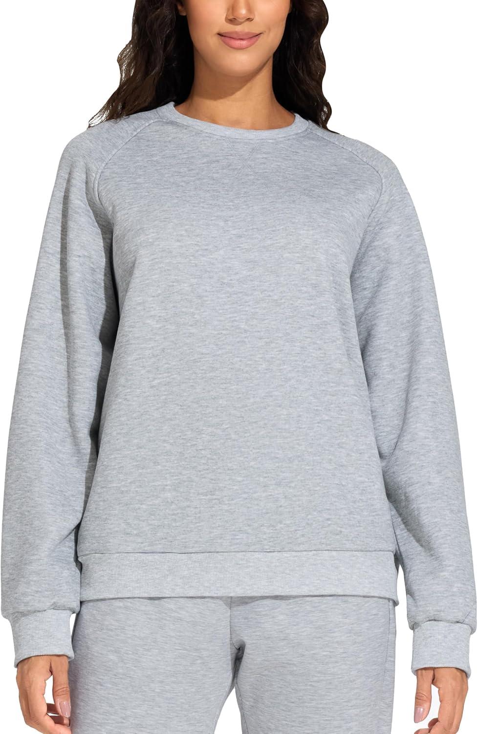 imageTHE GYM PEOPLE Womens Long Sleeves Fleece Sweatshirts Loose Fit Crewneck Workout Casual Pullover TopsHeather Grey