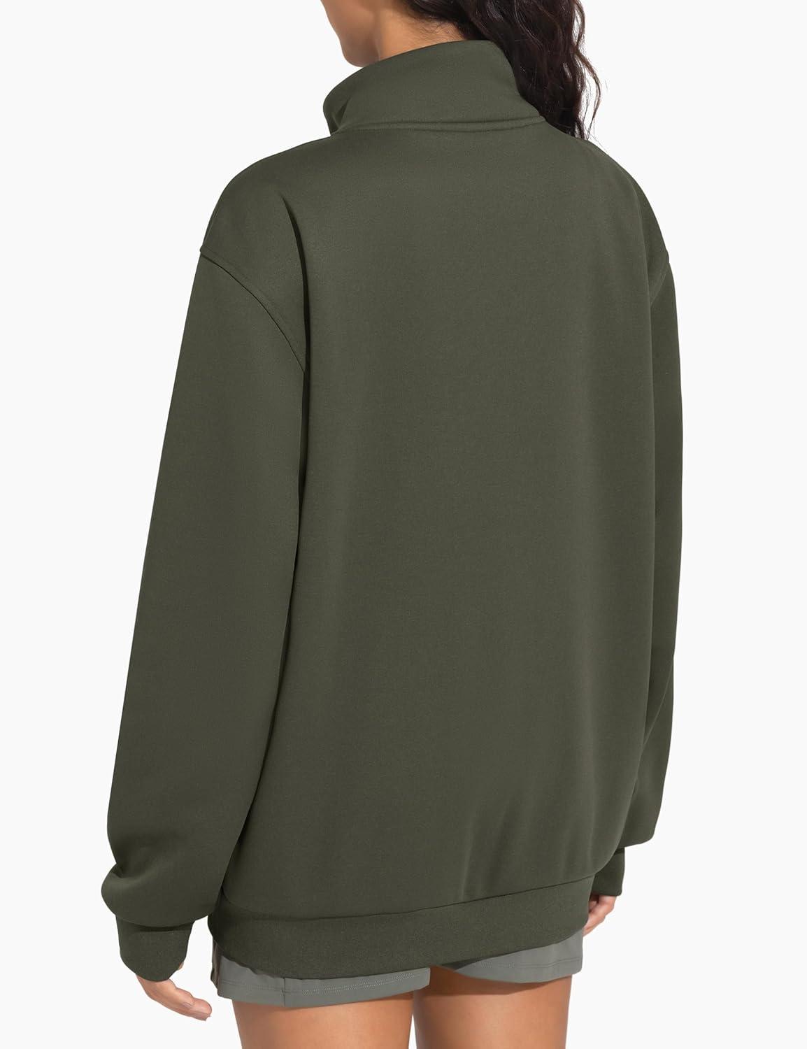 THE GYM PEOPLE Women’s Oversized Full Zip Up Sweatshirts Fleece Long Sleeves Stand Collar Workout Jacket with Pockets(Black)
