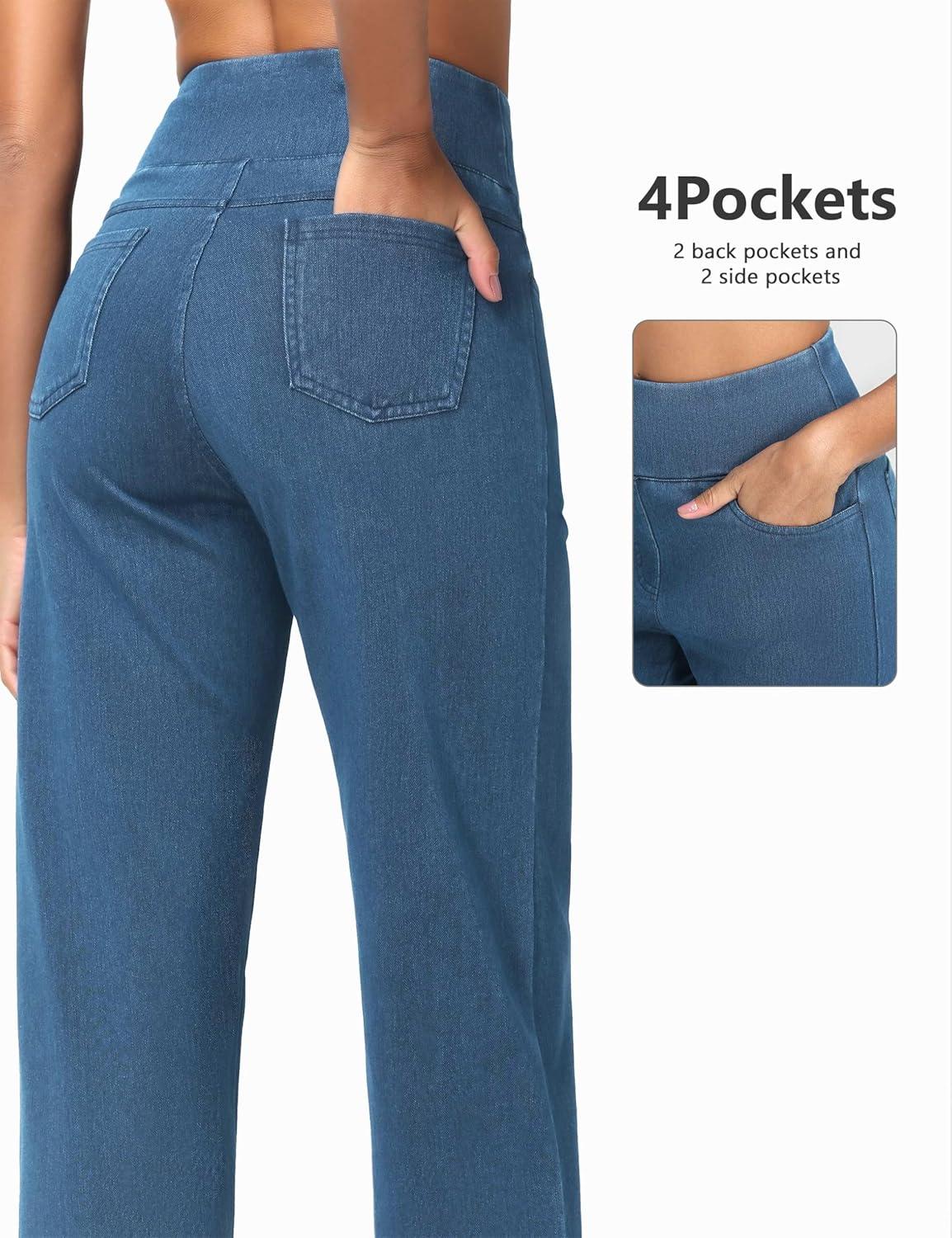 THE GYM PEOPLE Women’s Wide Leg Jeans High Waisted Pull on Stretchy Baggy Basic Straight Denim Pants with Pockets(Denim Blue)