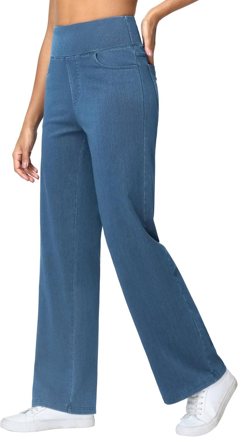 THE GYM PEOPLE Women's Wide Leg Jeans High Waisted Pull on Stretchy Baggy Basic Straight Denim Pants with Pockets(Denim Blue)