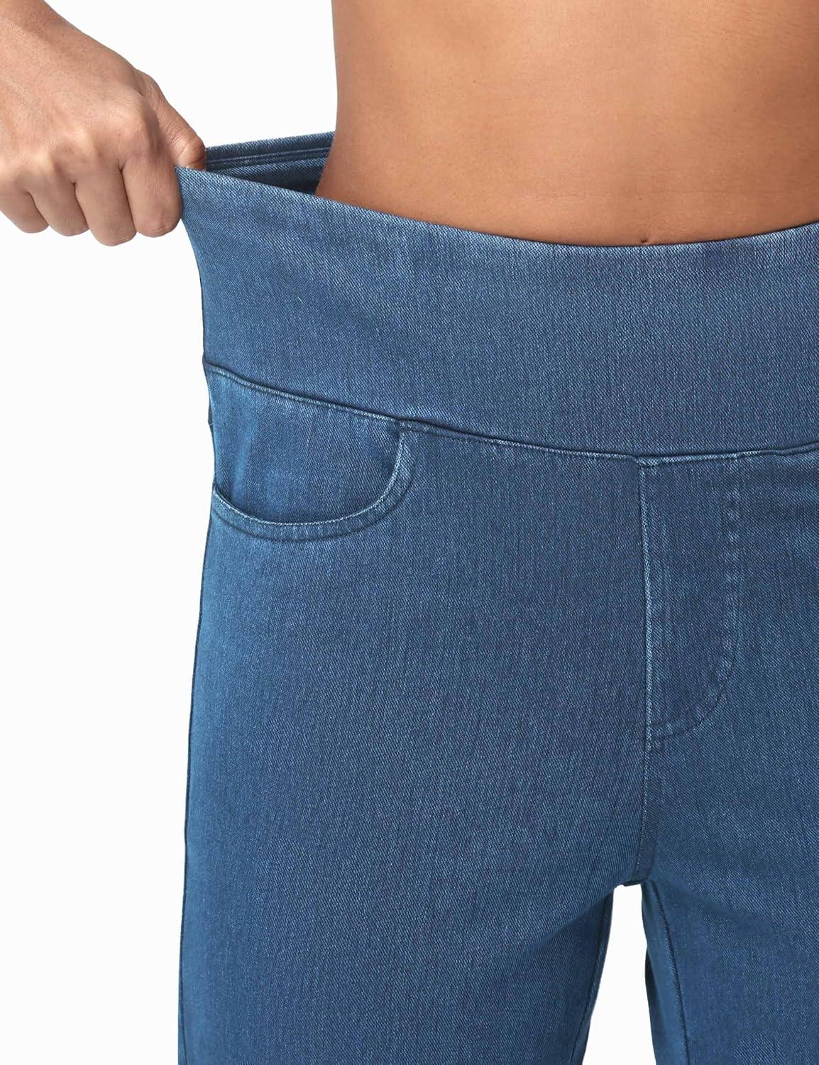 imageTHE GYM PEOPLE Womens Wide Leg Jeans High Waisted Pull on Stretchy Baggy Basic Straight Denim Pants with PocketsDenim Blue